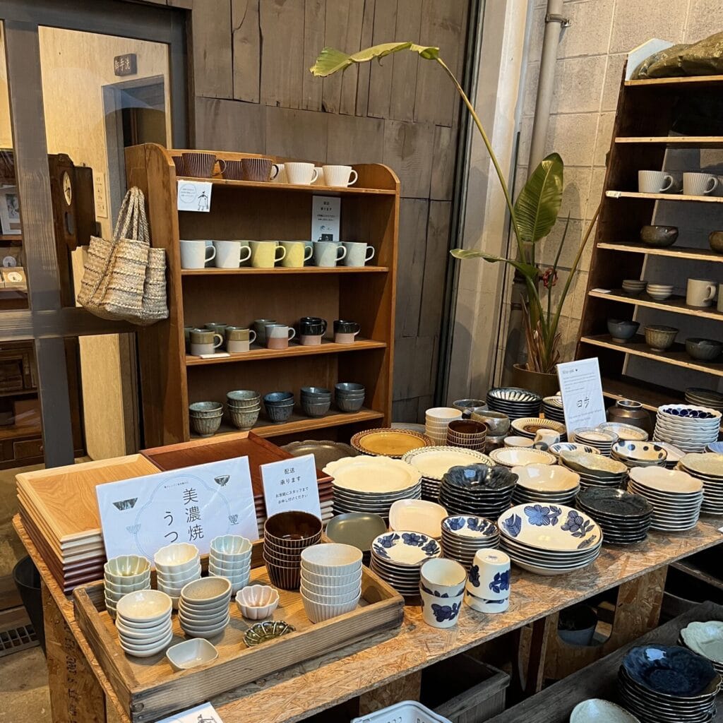 私が気になったのは、美しくかわいい器の数々。店内はもちろん、店先にもたくさんの食器が並んでいます。中でも、伝統を感じさせつつ今風の模様を楽しむことのできる美濃焼には、たくさんの種類が。「こんな素敵なお皿があれば、日々のひと時が特別なものになりそう。」と思いながら、ついつい見入ってしまいました。