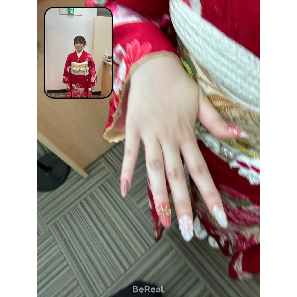 また、髪飾り以外にも、振袖に合うイヤリングやネイルチップも用意しました。特にネイルチップは、「minne」というハンドメイド作品を販売しているサイトで購入しました。前撮りの1週間前くらいに注文したので、可愛いデザインで発送が早い作家さんを選びました。