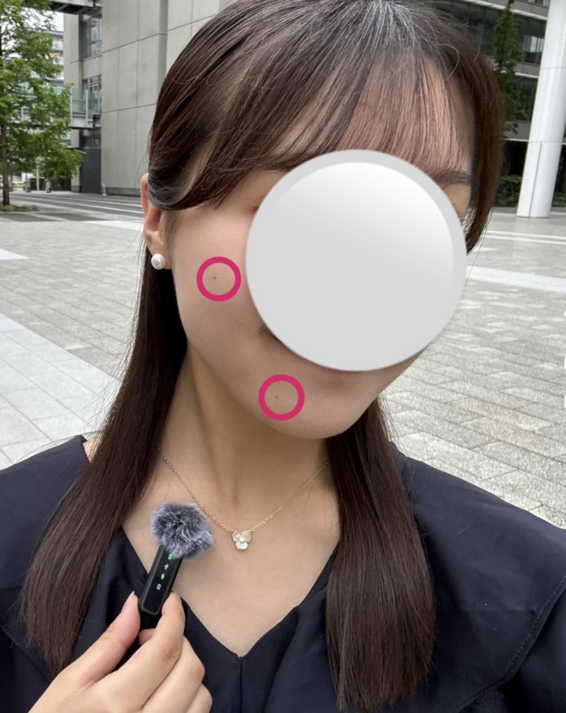 今回のクリニックでは、なんとホクロ一個当たり1000円とリーズナブル。ということで、気になる小さなホクロ7個にレーザーを当てました。