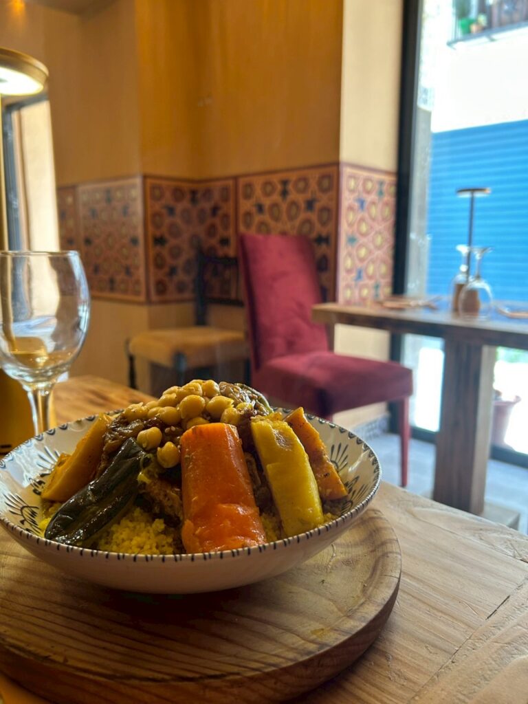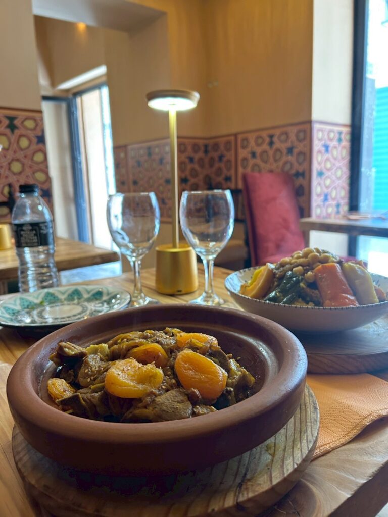グラナダでのランチには、タジン鍋とクスクスをいただきました。やさしいスパイスの香りと野菜や肉の旨みがぎゅっと詰まったタジンは、異国情緒たっぷり。クスクスもふわっと軽く、スパイスとの相性が抜群でした。