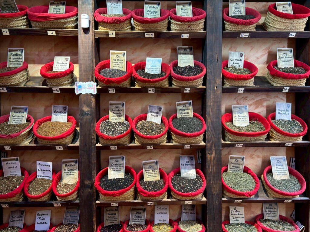 街を歩いていると、香辛料を扱うお店がたくさん並んでいて、彩り豊かなスパイスやハーブの香りが通りにふんわりと漂っています。アラブ文化の影響を色濃く残すグラナダならではの光景で、五感を刺激されるひとときでした。