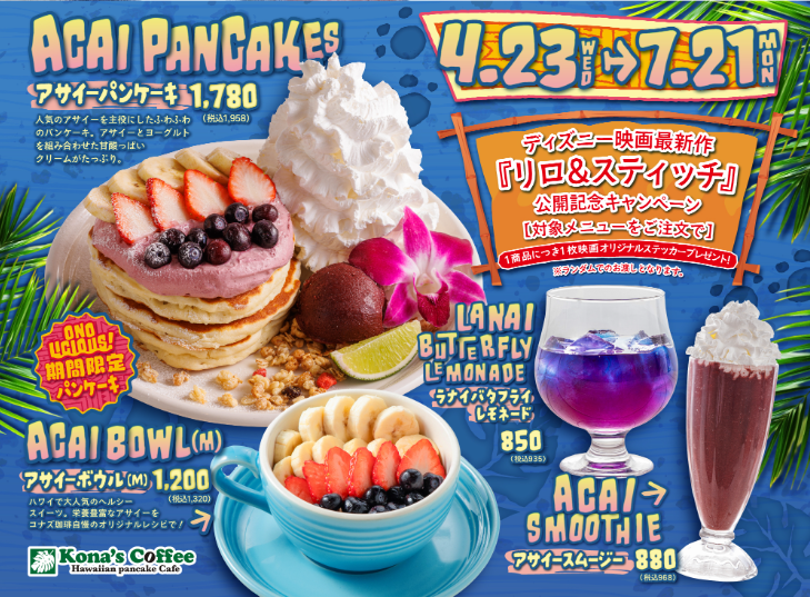 ということで、今回は「いちばん近いハワイ」を体感できるハワイアンカフェ・レストラン、コナズ珈琲の7/21まで期間限定スティッチ公開キャンペーンについて紹介します!スティッチ好きの皆さん必見です!
