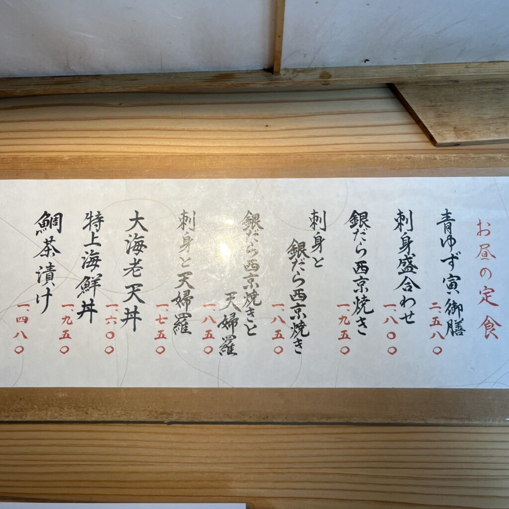 お昼の定食のメニューでは、メインに西京焼きやお刺身、天ぷらなどを選ぶことができます。中でも、銀だらの西京焼きは名物だといいます。