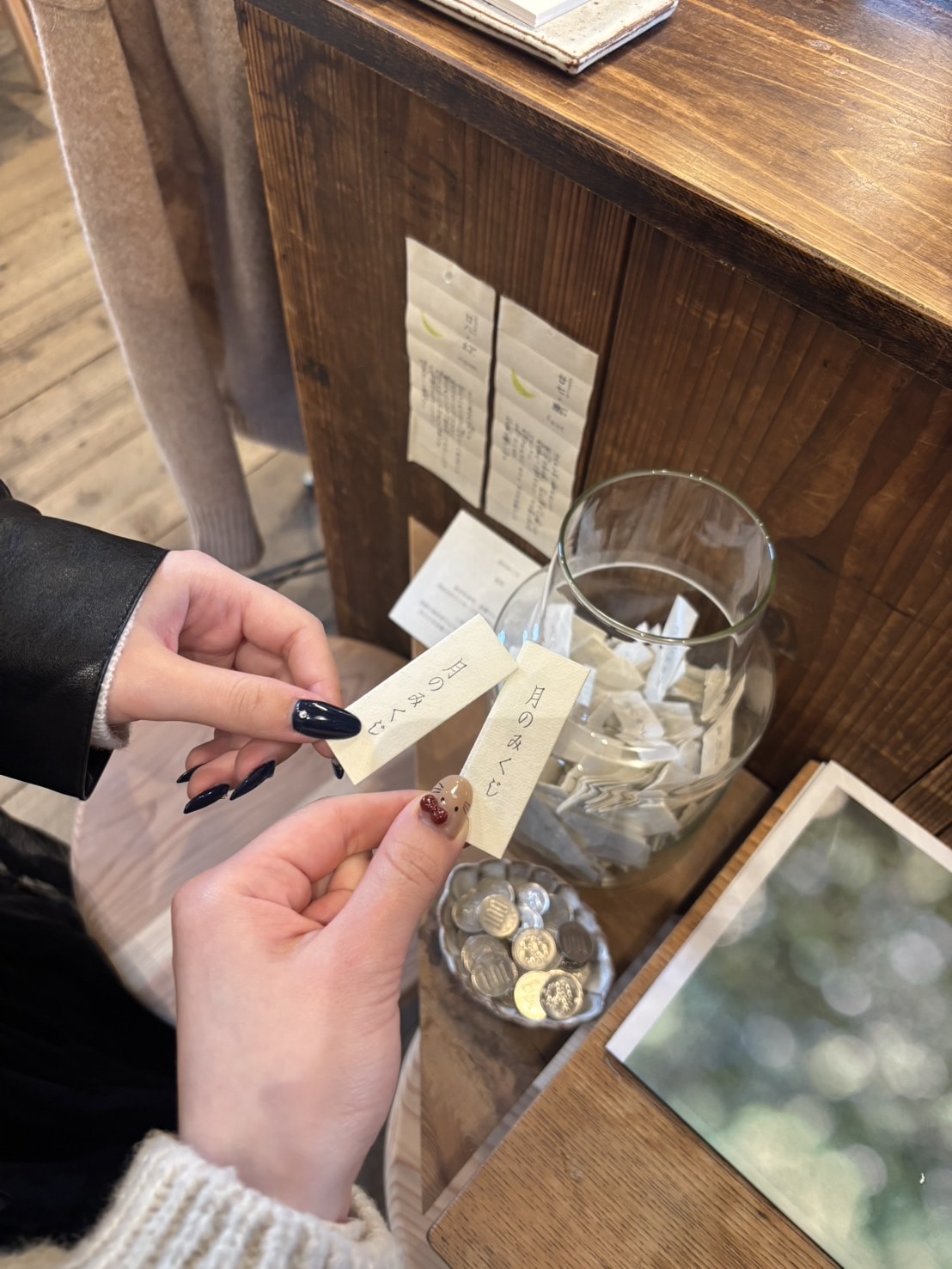 雑貨屋さんには月のイラストと素敵な言葉入りのおみくじがあり、とても惹かれて買いました!