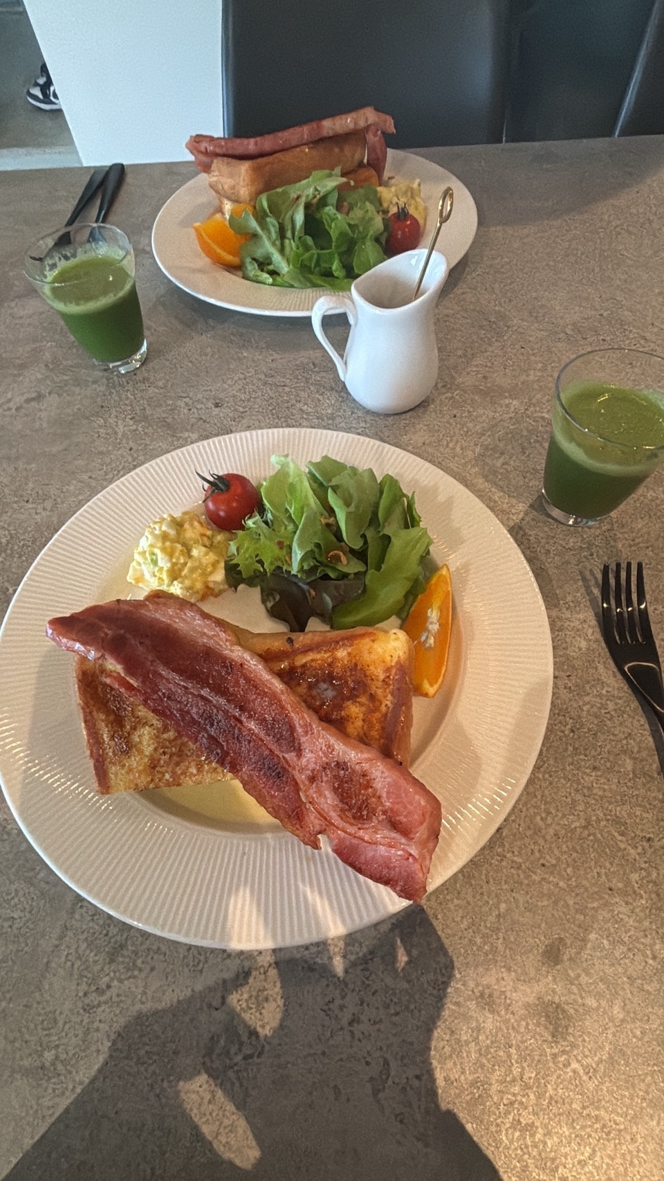 夜は、自分たちでキッチンで料理しましたが、朝はおいしいフレンチトーストプレートがついていました!