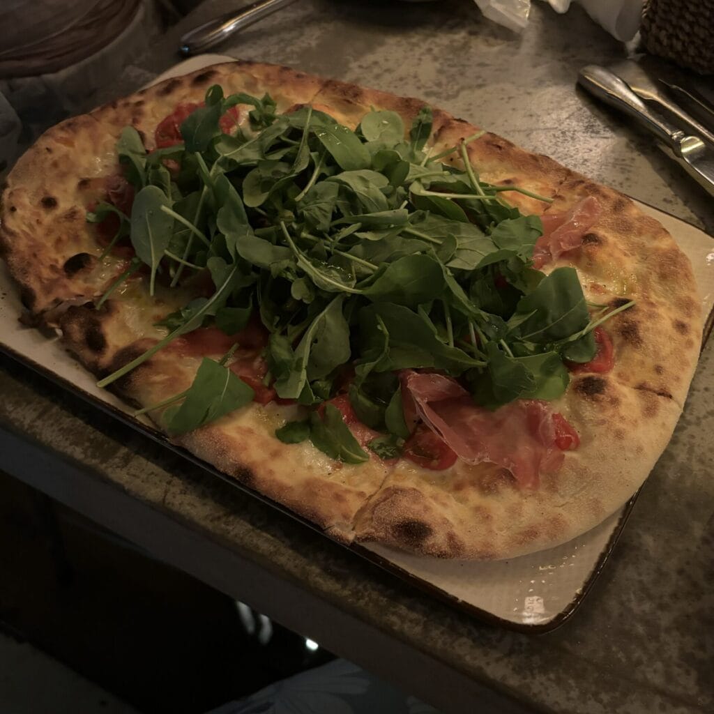 ルッコラの香ばしさを思う存分感じることができる、シンプルだけど満足感のあるピザ。