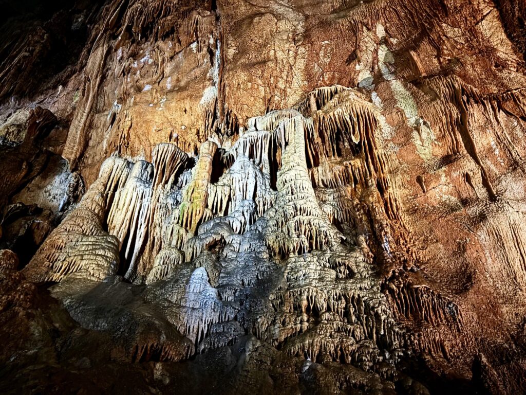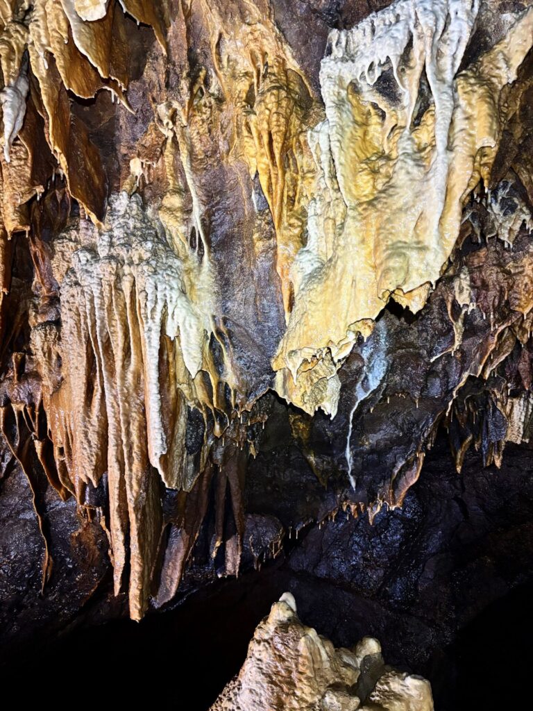 カーテン状になった鍾乳石がびっしり下がっていて、ちょっと不気味でさえありますが、これも自然物のおもしろさだと思いました✧︎