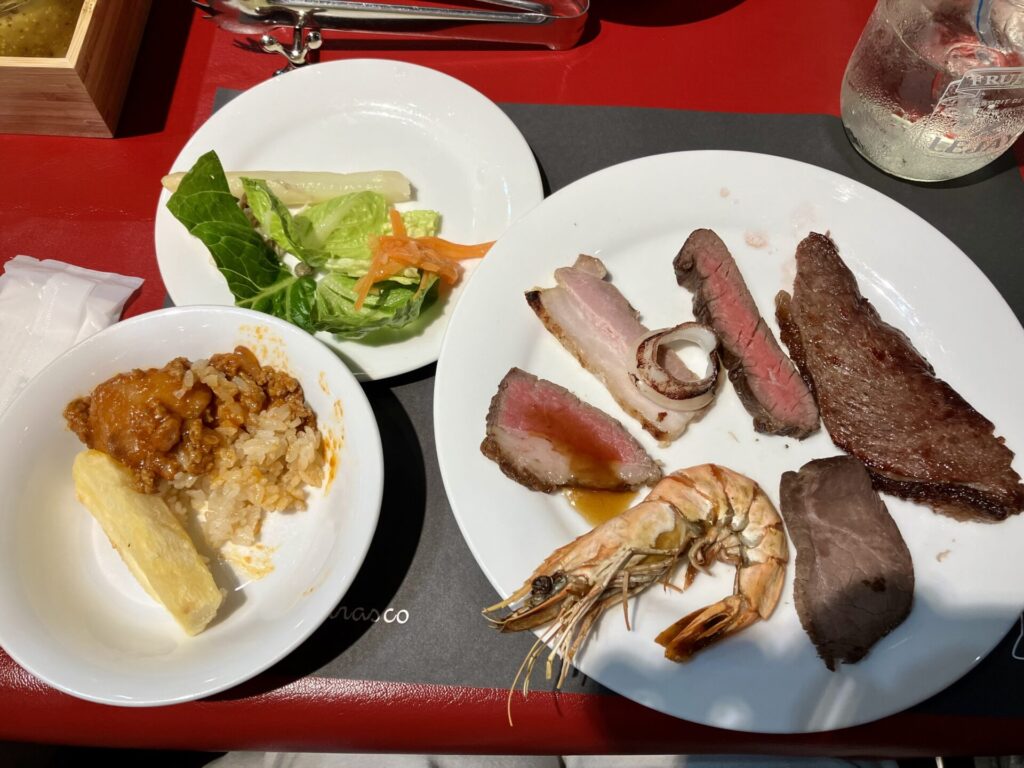 一階にはシェラスコ料理という「焼いたお肉を目の前で切り分けるブラジル発祥の料理」のディナーが楽しめるレストランがあります。