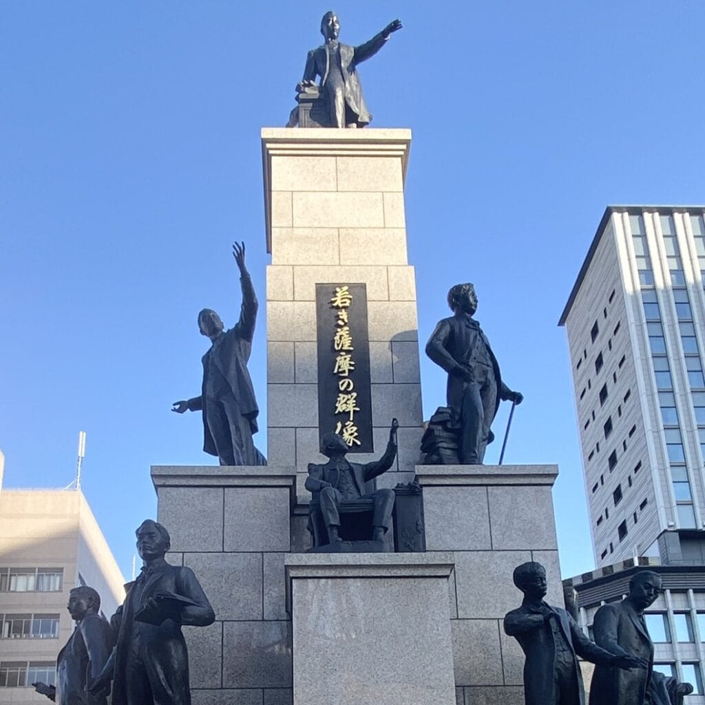 鹿児島中央駅の東口広場に立つ、薩摩藩からイギリスへ留学した若者たちの像。
