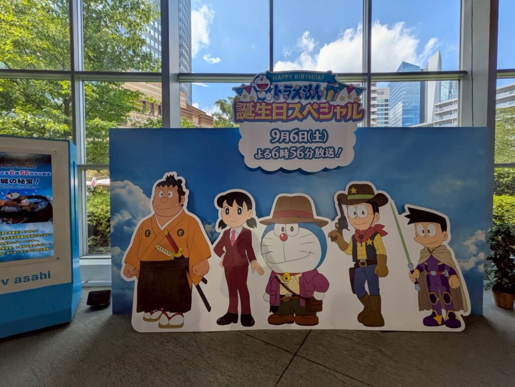 テレビ朝日本社1階にあるアトリウムには、『ドラえもん 誕生日スペシャル』のフォトスポットが!