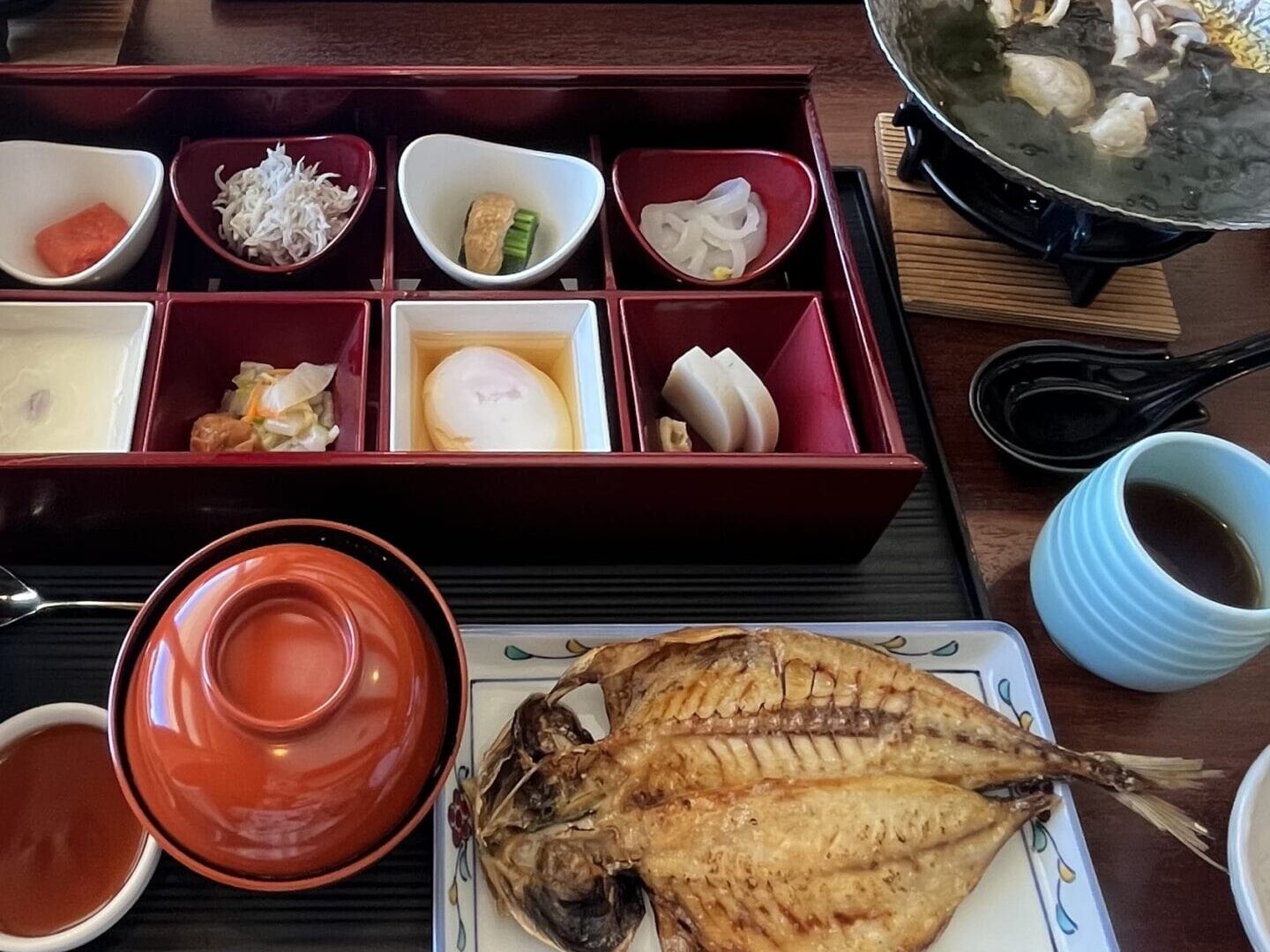 朝食は宿泊したエクシブ初島クラブ内の「日本料理 初海」でいただきました。