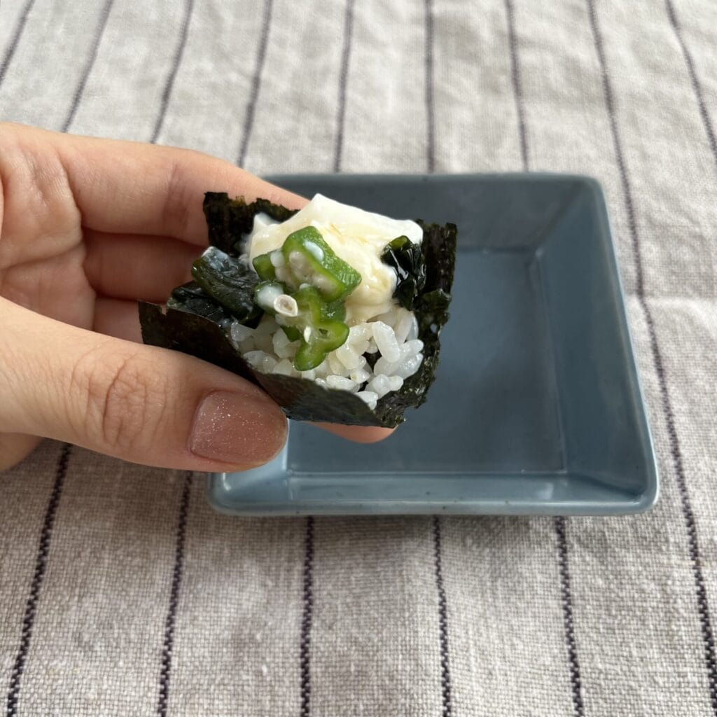 最後は、豆腐を白米と一緒にのり巻きにする食べ方です。とろとろの豆腐とふんわりとしたご飯を香ばしい海苔で包めば、食感にも変化が生まれ、だしの旨みと海苔の風味が調和する、奥行きのある味わいに。食欲のない日でも思わずパクパク食べられる、間違いのない組み合わせです。