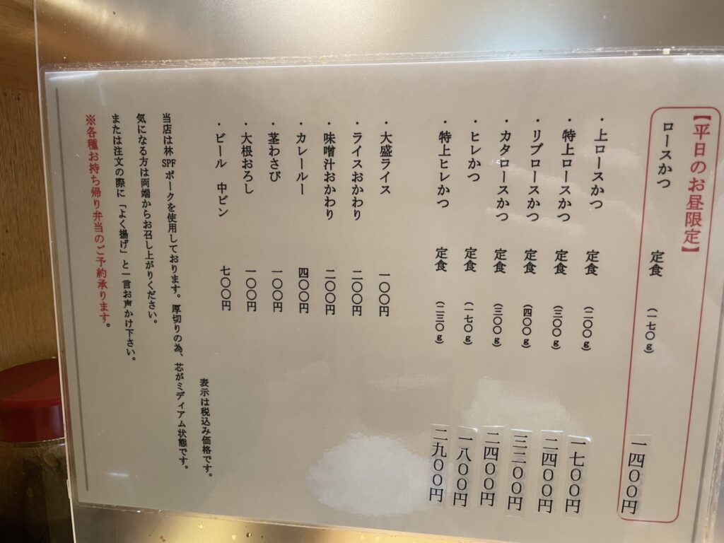 13:00にはすでに平日お昼限定のロースかつは売り切れていました、、ロースかつ狙いの方はお早めに!