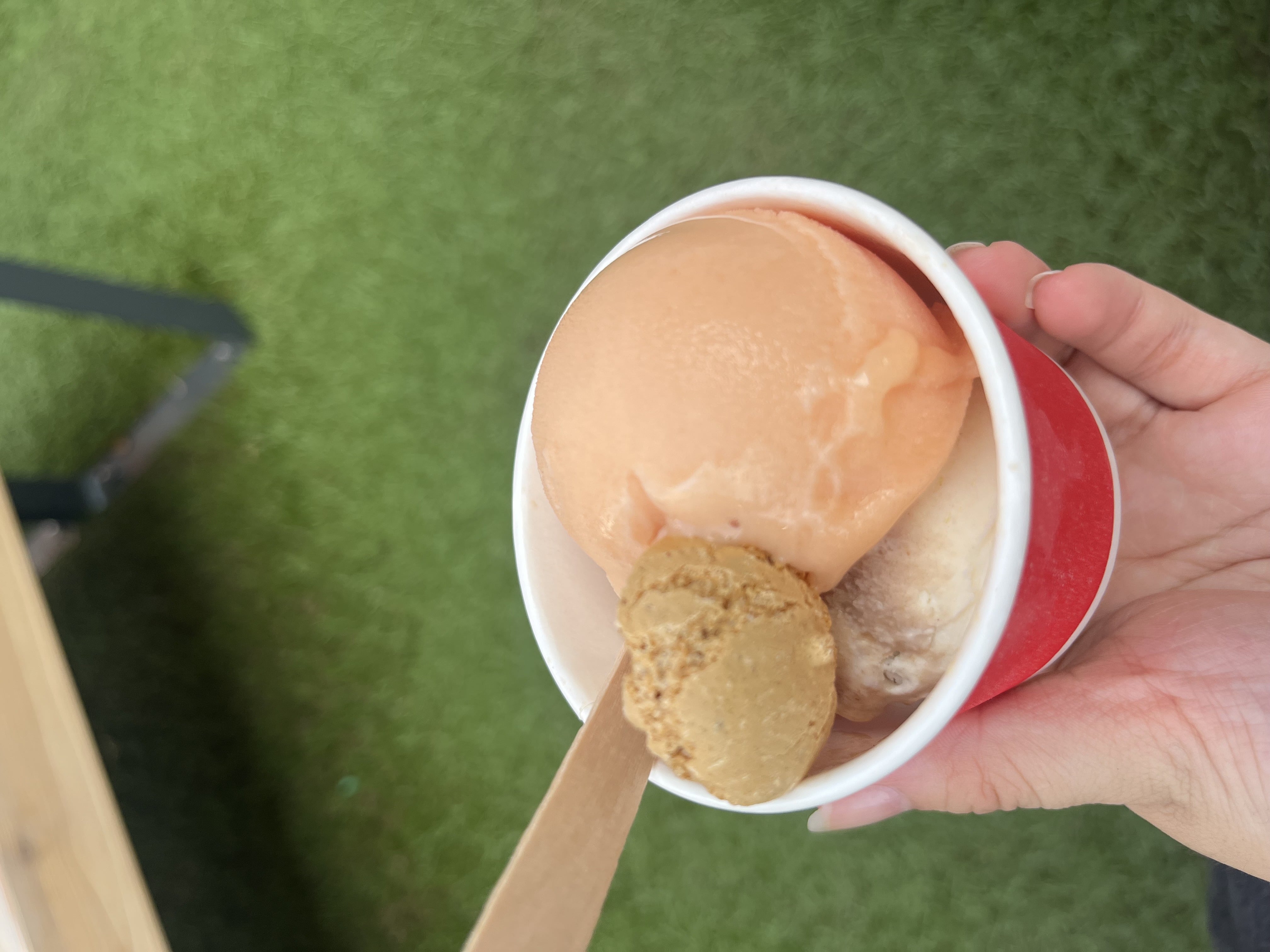 ティラミスは、なかなか見ないフレーバーでどのような味がするのか気になっていましたが、食べてみると、白い部分はマスカルポーネ風味のクリームジェラート、茶色い部分はコーヒーとココア風味を感じるジェラートとなっていて一緒に食べるとまさにティラミス!完全にジェラートでティラミスが再現されていました!