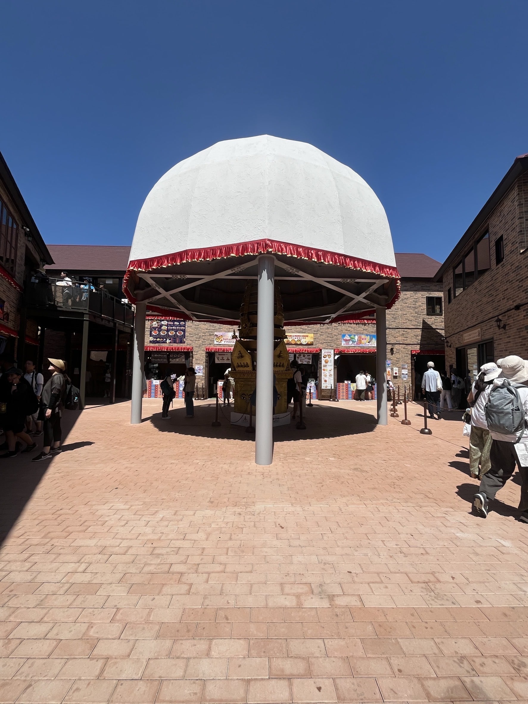 真ん中には日陰になるようなドーム状の屋根の下に寺院のモニュメントがあります。