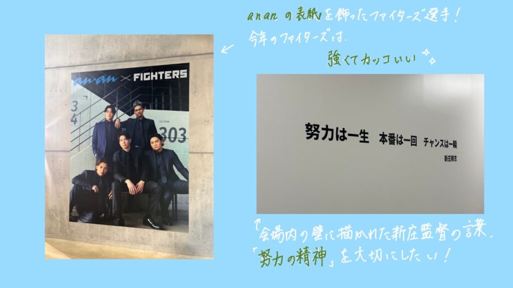 エスコン内には、プレミアムエリアとして、ANA・docomo・Panasonicのクラブラウンジがあります! 普段は、年間シートを持っている人しか入ることはできません!しかし、年に何度か一般の人にも開放されています😮 選手ととても近い距離で観戦できたり、美味しい料理をビッフェ形式でいただくこともできるそうです。 私は、エスコンのイベントに参加した際、控室としてANAのクラブラウンジに入りました✨ その日は食事の提供はありませんでしたが、雰囲気は十分に味わうことが出来ました! 皆さんも機会があれば、ぜひ行ってみてほしいです!