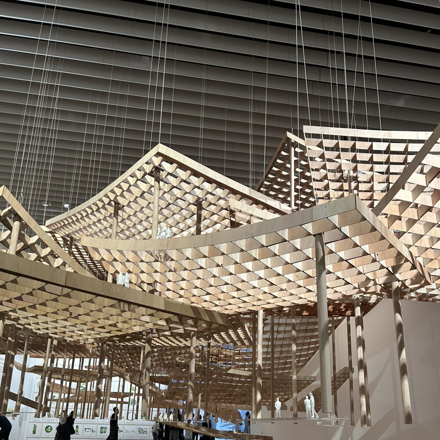 2025大阪・関西万博のシンボルである「大屋根リング」の制作に関する展示です。構想段階のスケッチや、完成後のインタビュー映像など盛りだくさんのスペースです🏢