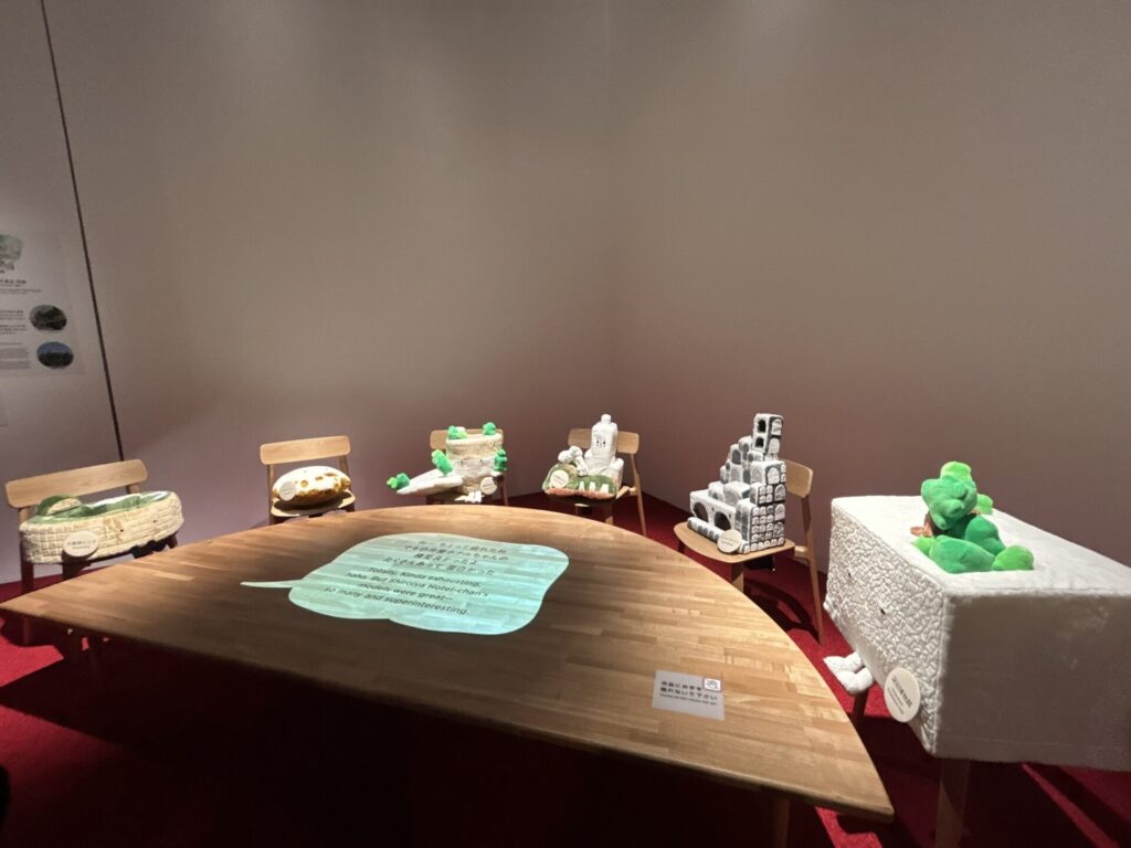 藤本さんの建築を代表する9作品がぬいぐるみとなり、お互いに対話をする展示です。ぬいぐるみの会話の中には過去作品に関する豆知識も多いため、ぜひお立ち寄りください🌟