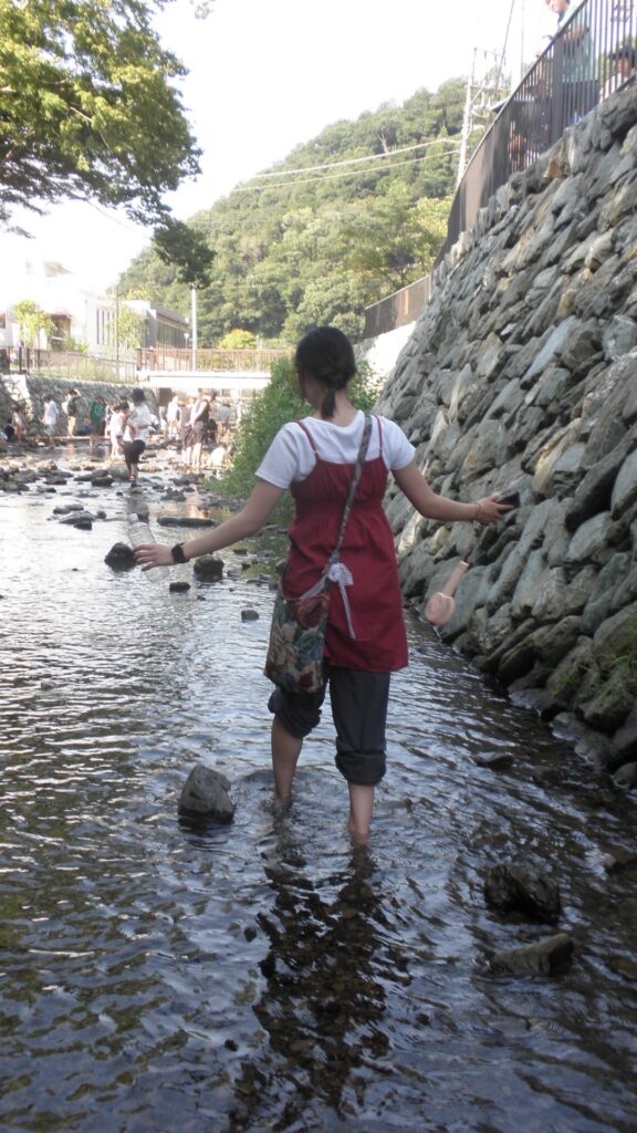 高尾山口駅の辺りに川があり、子供達に紛れて足だけ水に入りました!