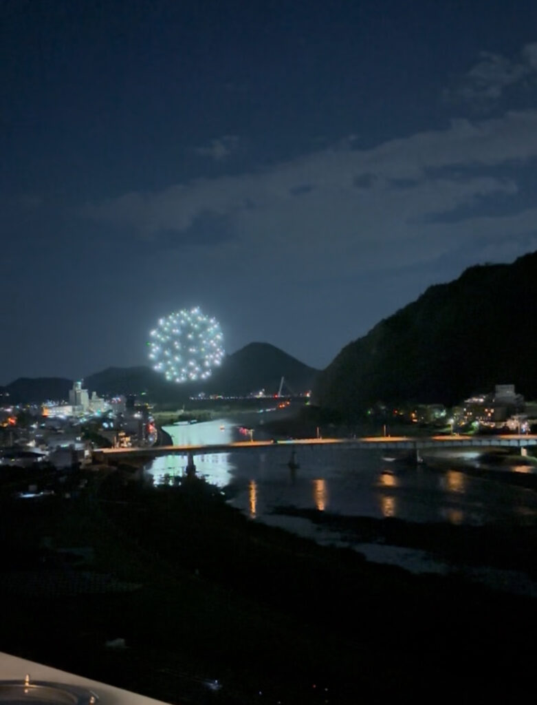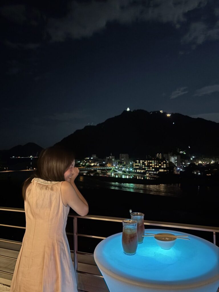 地上40mの最上階から長良川や金華山の夜景眺めながらビールで乾杯!夏ならではの贅沢なひとときです。鵜飼開催日には、19:45頃にあがる4発の花火が夜の始まりを彩ります。