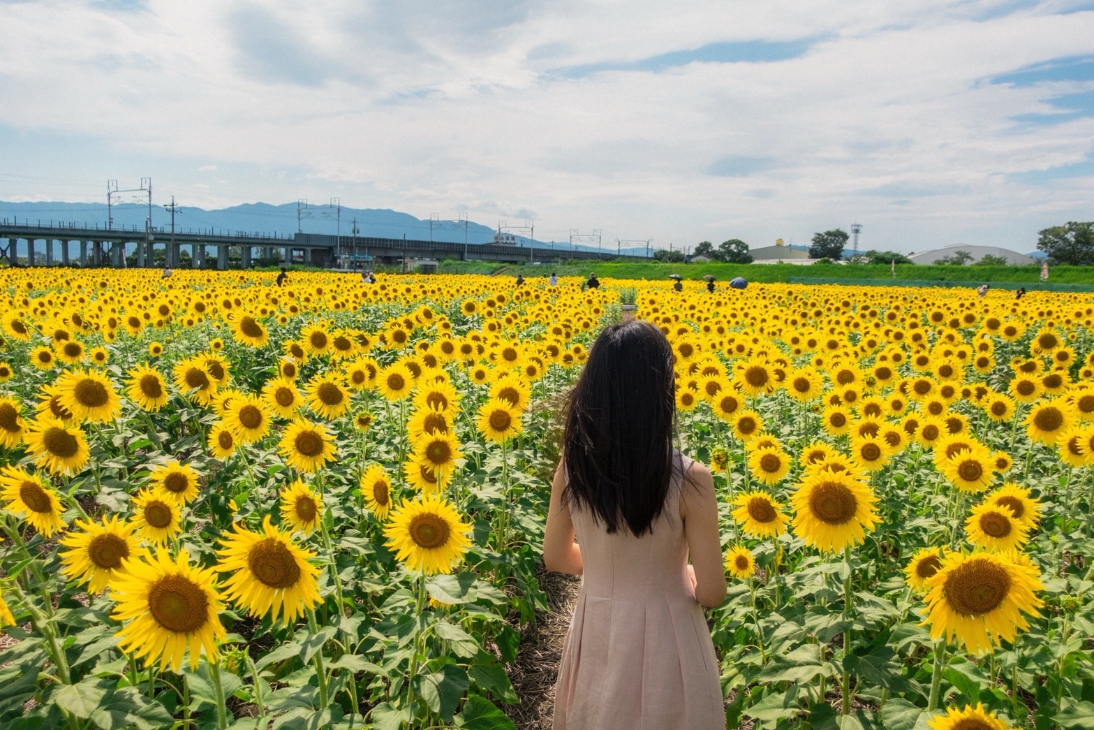 一面に広がる鮮やかなひまわりは、夏の風物詩として訪れる人々を魅了します。光を浴びて輝く黄色の花々の中で写真を撮れば、夏らしい思い出が美しい1枚として残ります。