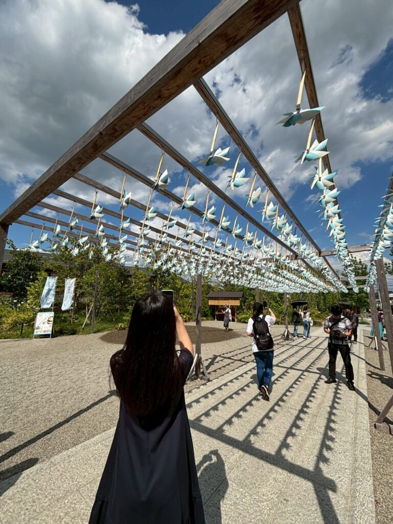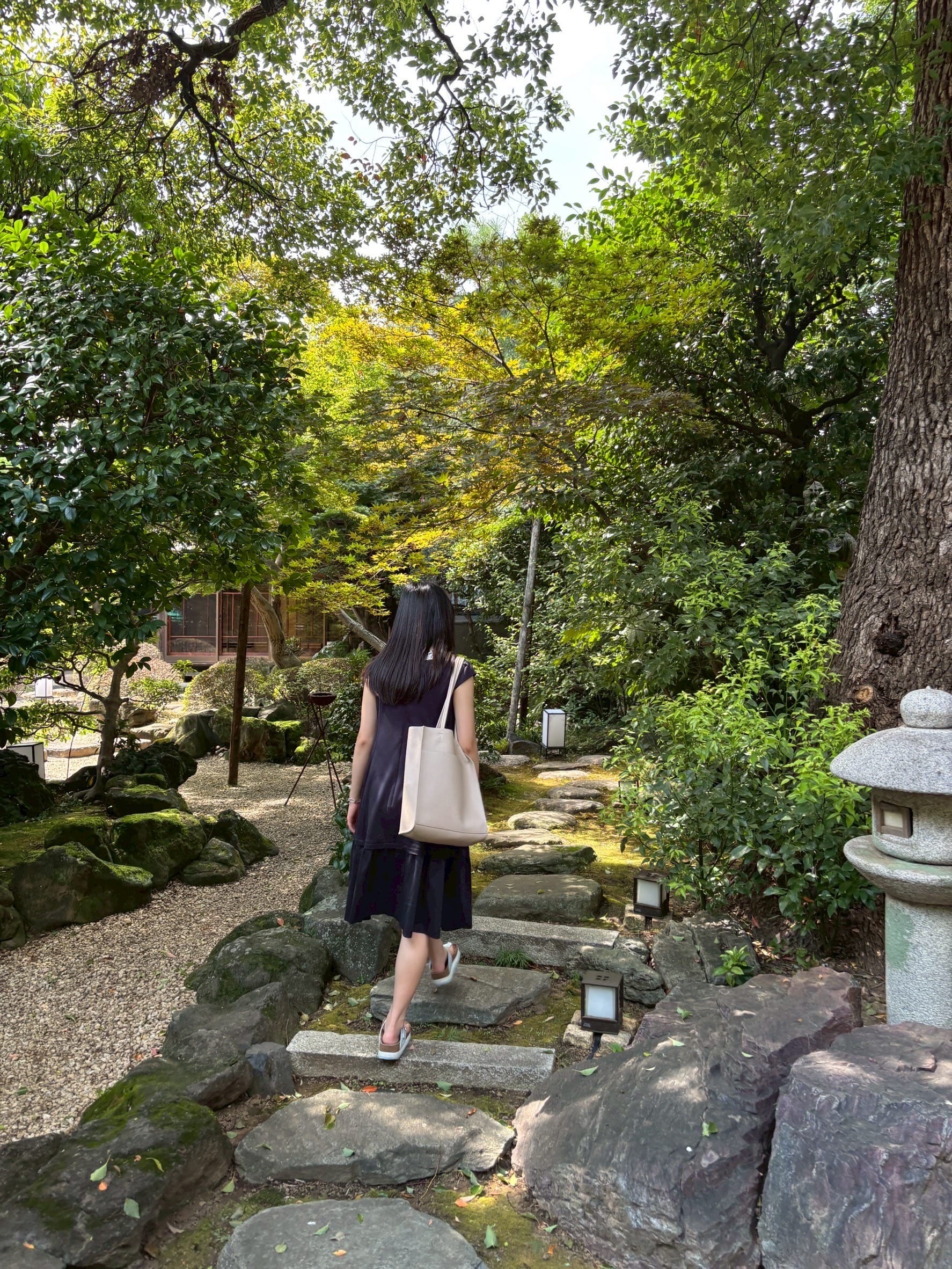 体験の後は、日本庭園を散策。縁起のよい舟石や季節の植栽を眺めながら歩き、敷地内の鳥居では商売の神様に手を合わせました。静けさの中で心が整い、川越観光の合間にふっと深呼吸できるような贅沢な時間でした。