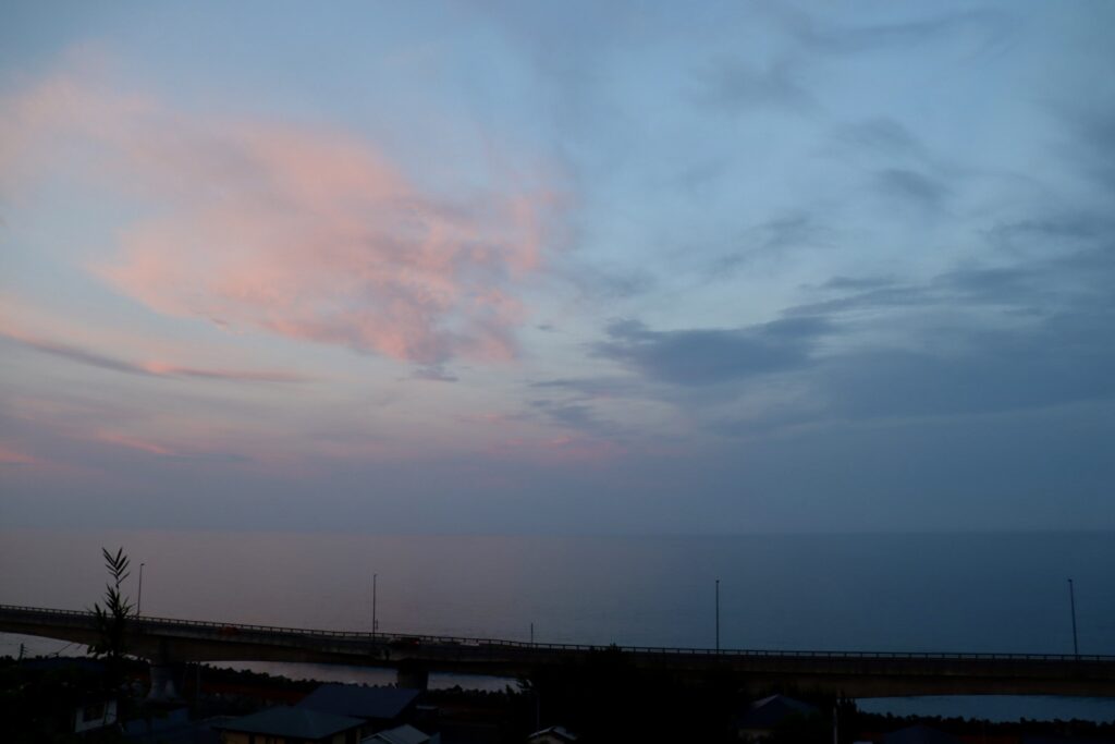 私が行った日はやや曇っていたのですが、それでもこの綺麗さ✨淡い夕日を眺めながら涼しい海風も感じられてとても過ごしやすかったです!