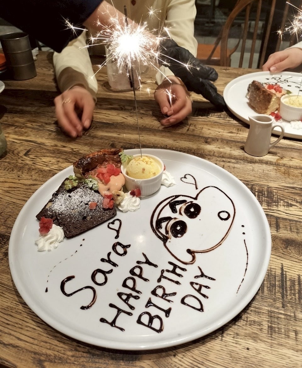 一緒にご飯を食べた後、店員さんがタイミングを見計らって、プレートを持ってきてくださいました!