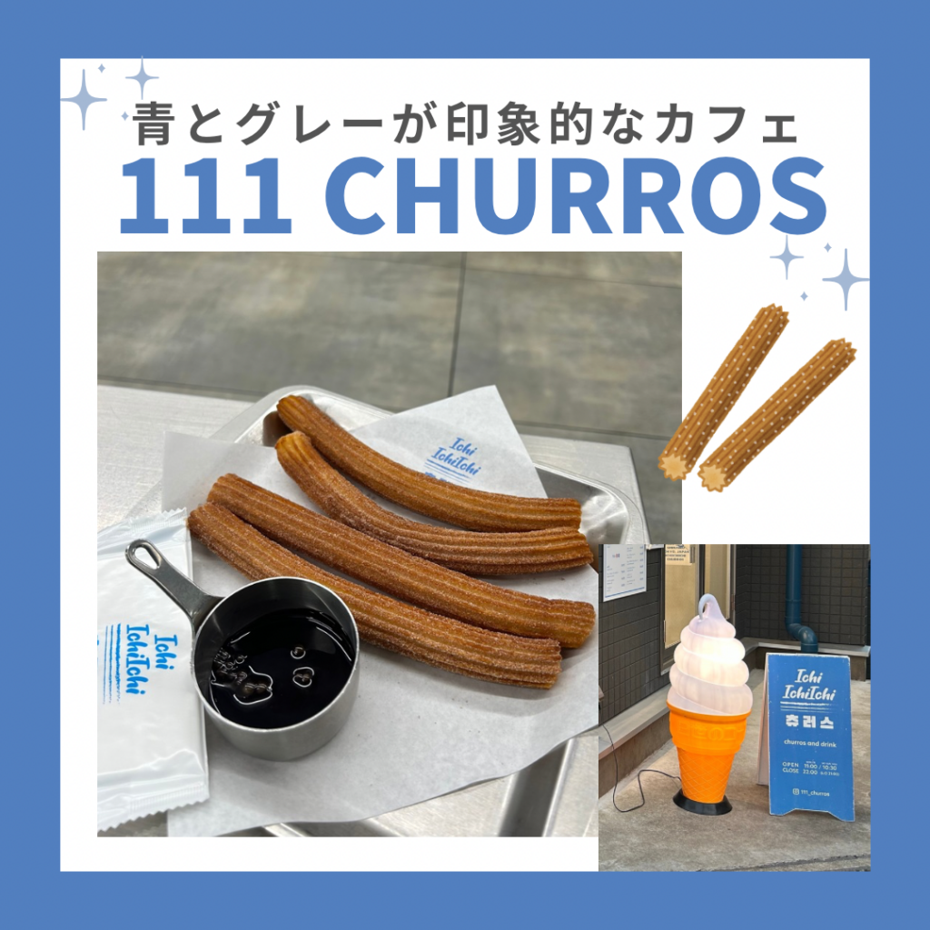 【アツアツ揚げたてチュロス♪】青とグレーが印象的なカフェ「𝟭𝟭𝟭𝗖𝗛𝗨𝗥𝗥𝗢𝗦」をご紹介します!