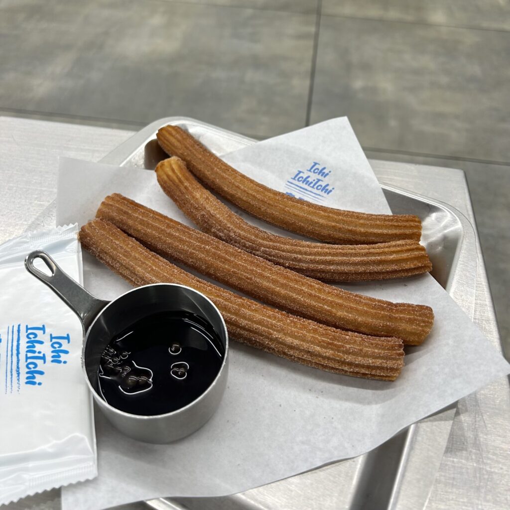 外はカリカリ、中はもちもちとした、このお店おすすめメニュー「チュロス」。注文後に店内で揚げられており、提供時はとてもアツアツでした!