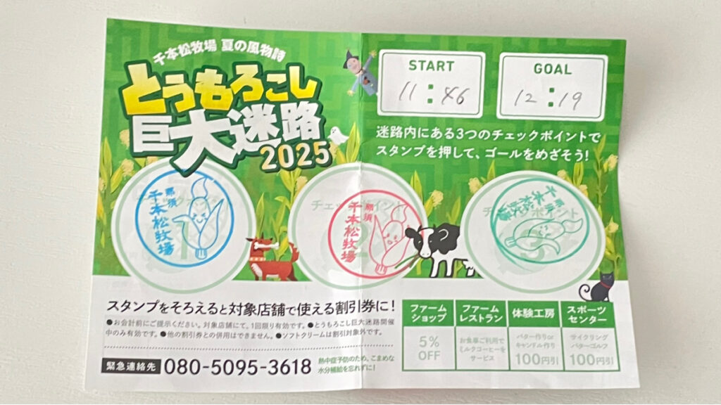 巨大迷路に隠された3つのスタンプをそろえると売店、レストランなどが割引になる特典もあります!