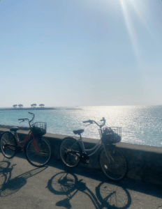 並木レンタサイクルで1時間300円の自転車を借りました。私が行ったときは、混んでいてありませんでしたが、電動自転車や電動キックボードもあるみたいです!
