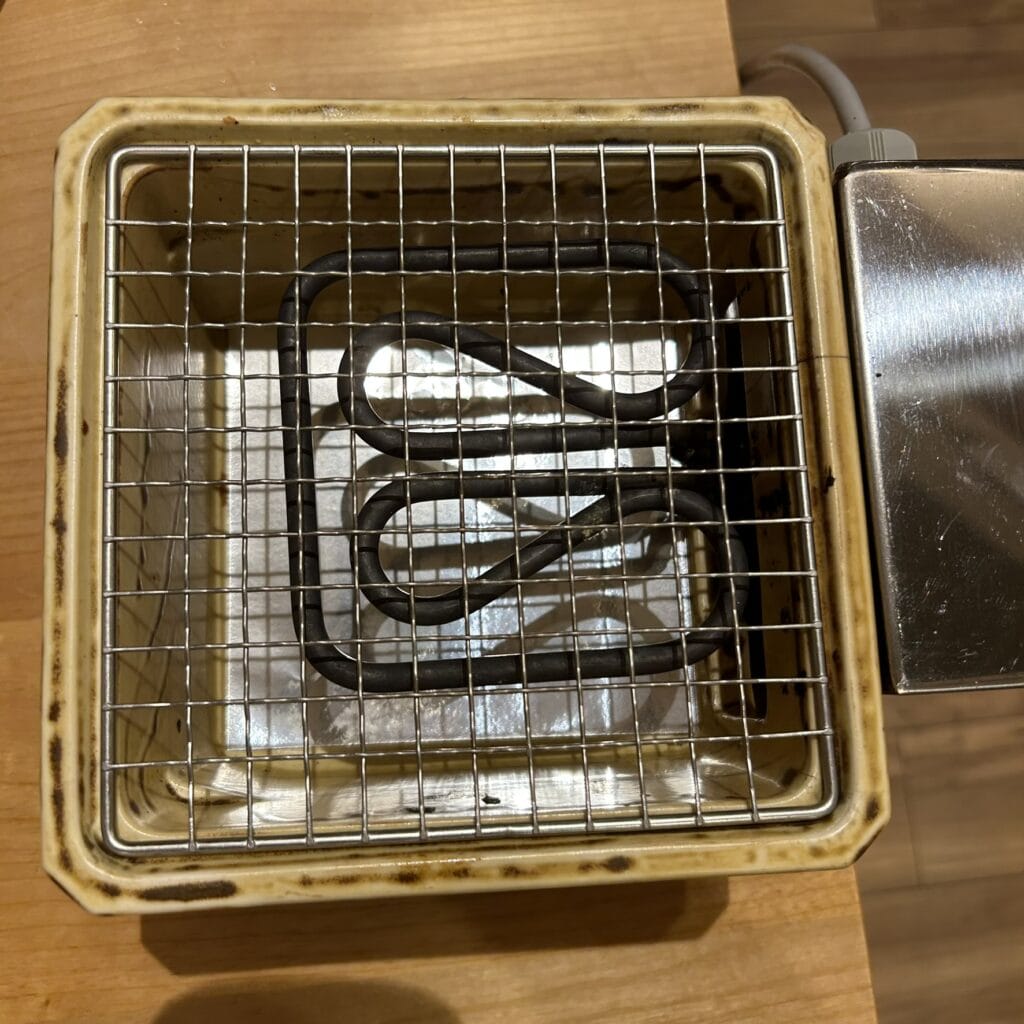 注文後にまず、焼き台を席まで持ってきてくれて網を温めます。