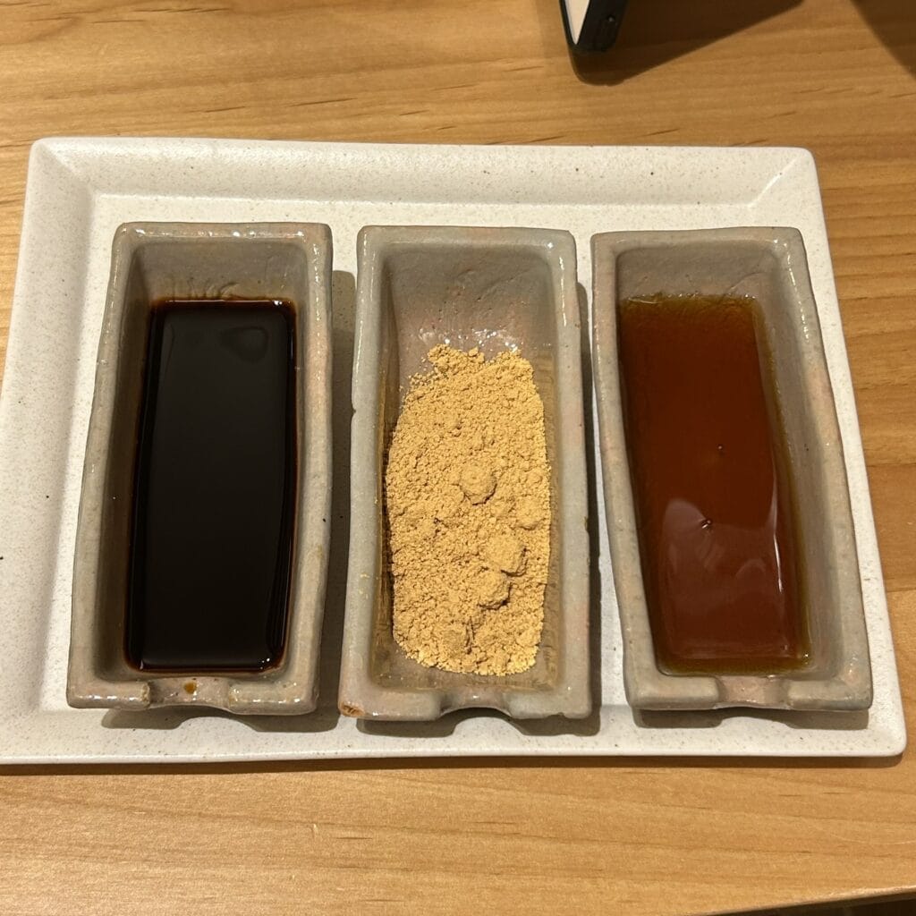 その後、焼く前のおだんごとトッピングを持ってきてくれます。