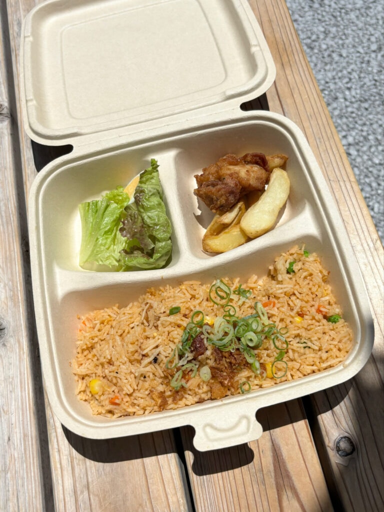 ナシゴレンは、日本語で言う「炒めご飯」!とにかくボリューミーでご飯がぱらぱら!セットのからあげがジューシーでおいしすぎて感動♡