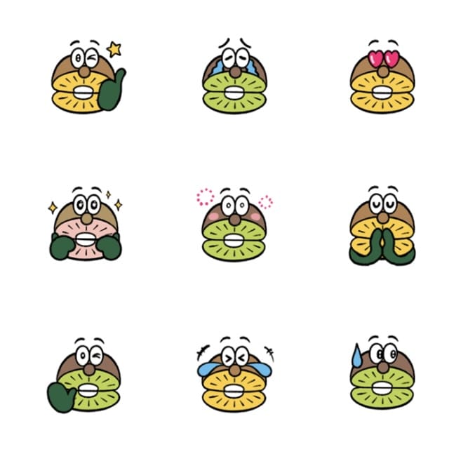 有名アニメのキャラクターではありませんが、みんながよく知っているキウイブラザーズの絵文字もおすすめです🥝