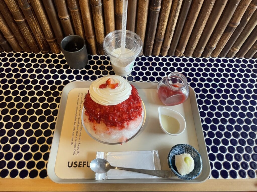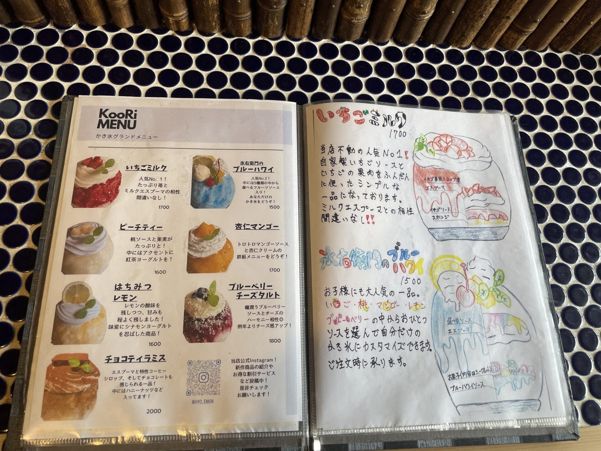 その後、御嶽駅から歩いてすぐのところにある、かき氷屋さんに来ました!お客さんの多い人気店で、ネームボードに名前・電話番号を書いておくと席の準備が出来た際に、電話をかけてくれるという仕組みでした。