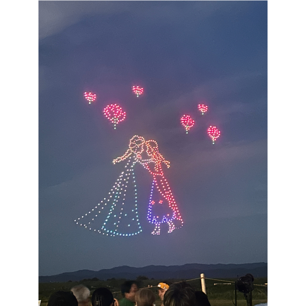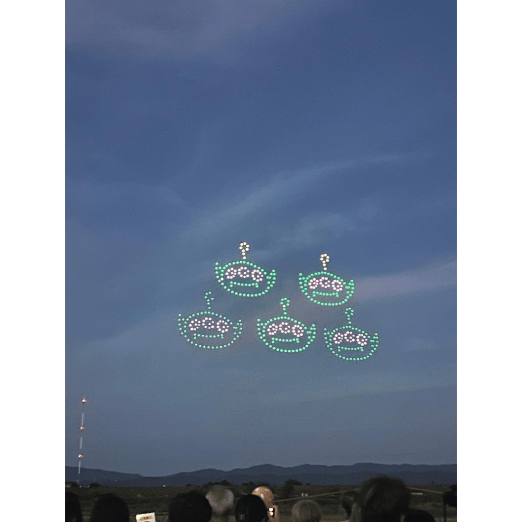 私はドローンショーを見るのが初めてだったのですが、「どうやって演出しているの?」と思うほど美しくて、まるで空に絵が描かれているようでとても感動しました。