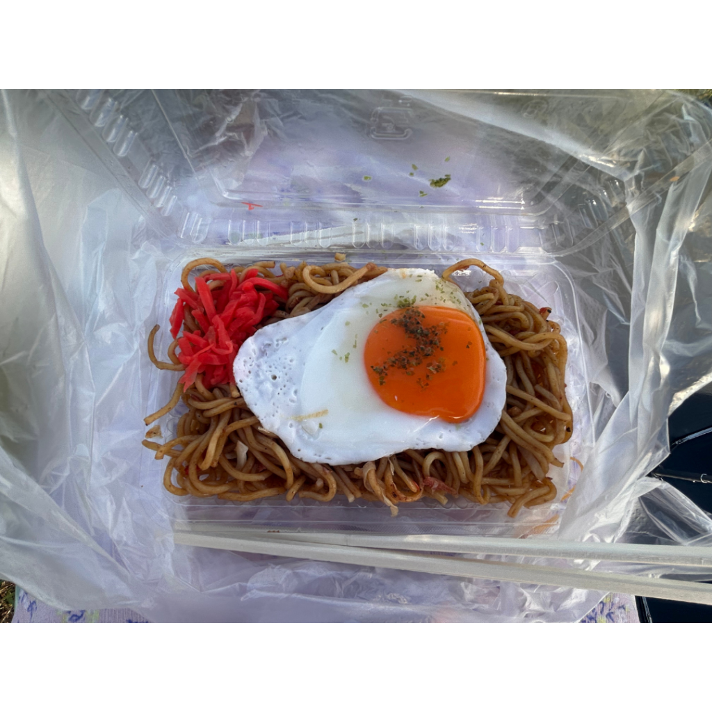 私は屋台で焼きそばを購入し、花火大会が始まるまで席で食べながらワクワクした気持ちで待っていました。