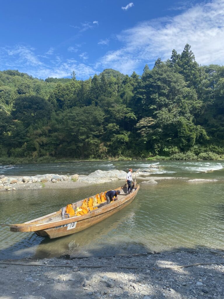 木製の船に乗って、船頭さんのユーモアあふれるトークを聞きながら川を進むと、両岸の岩畳や青い空が広がってまさに非日常です。