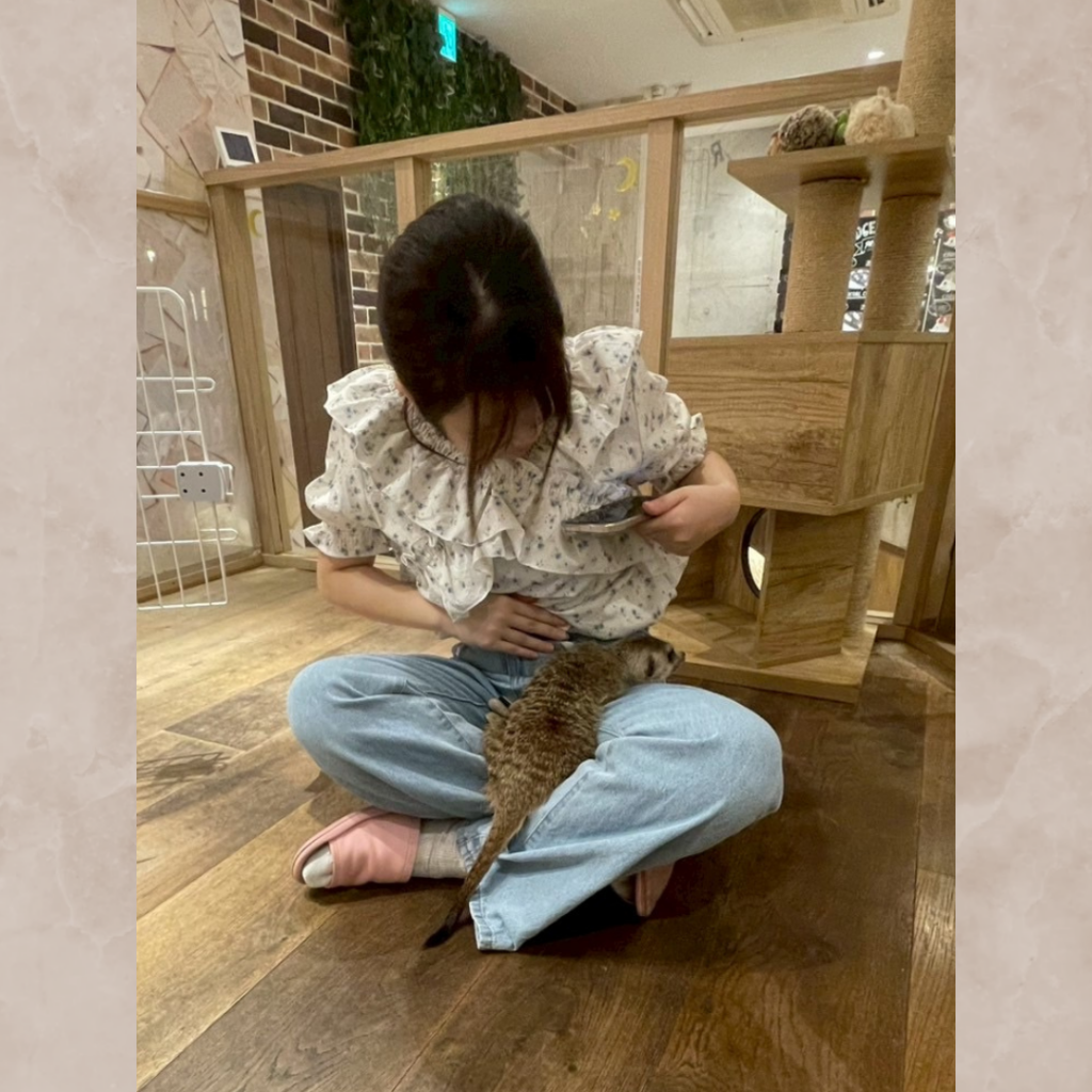 「ミーアキャット」はとても人懐っこく、床にあぐらをかいて座っていると、足の上に来てくれて可愛らしかったです。