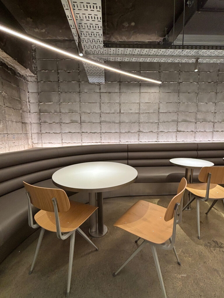 イートインスペースは広く、宇宙をイメージした無機質な雰囲気。空いていてゆっくりできました!