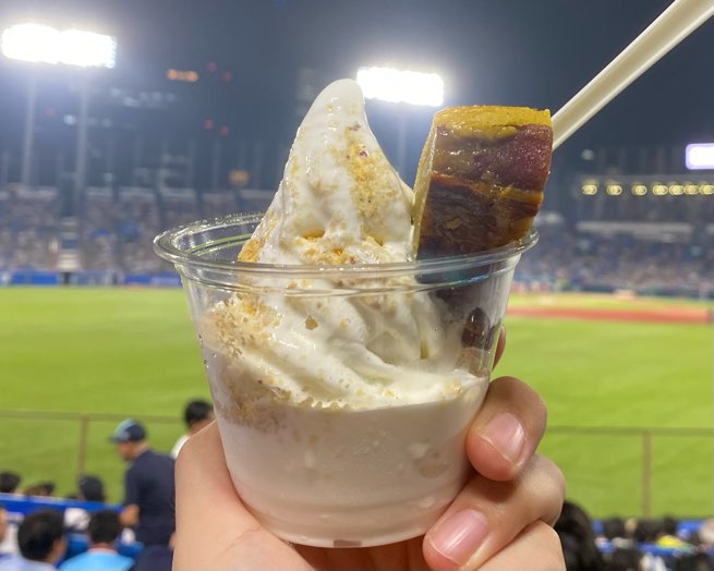 スイートポテト×ソフトクリームは間違いないですよね!私が観戦した日は風が少なく、蒸し暑い日だったので屋外で食べるソフトクリームは甘さが体に染みわたり絶品でした。