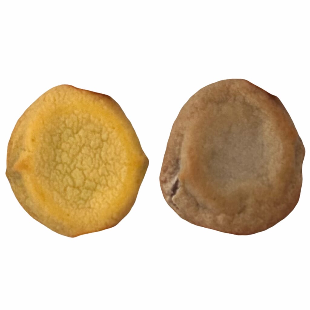 中には、カントリーマアムの定番「バニラ」と、秋らしい「パンプキンタルト」の2種類の味が入っています。写真右がバニラ、左がパンプキンタルトです!バニラ10枚・パンプキンタルト7枚の計17枚入り。