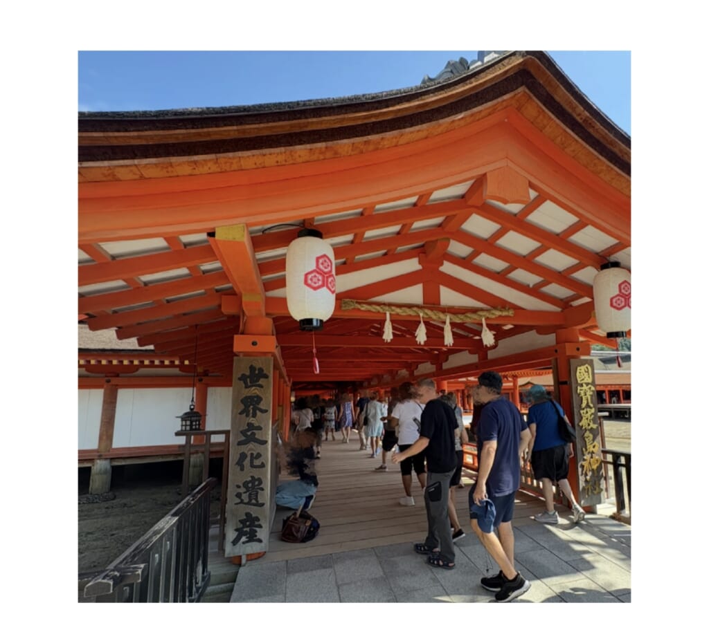 日中に訪れたこともあり、日影が少ない宮島でしたが、本殿は日影が多く、直射日光を避けながら鳥居と海の景色を楽しむ方がたくさんいました☀