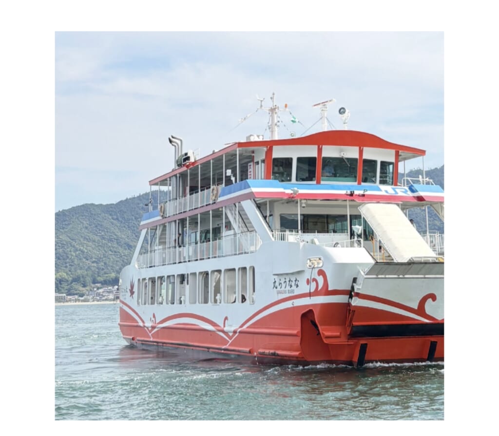駅から徒歩5~10分ほどでフェリー乗り場があり、宮島へ向かいます🚢
