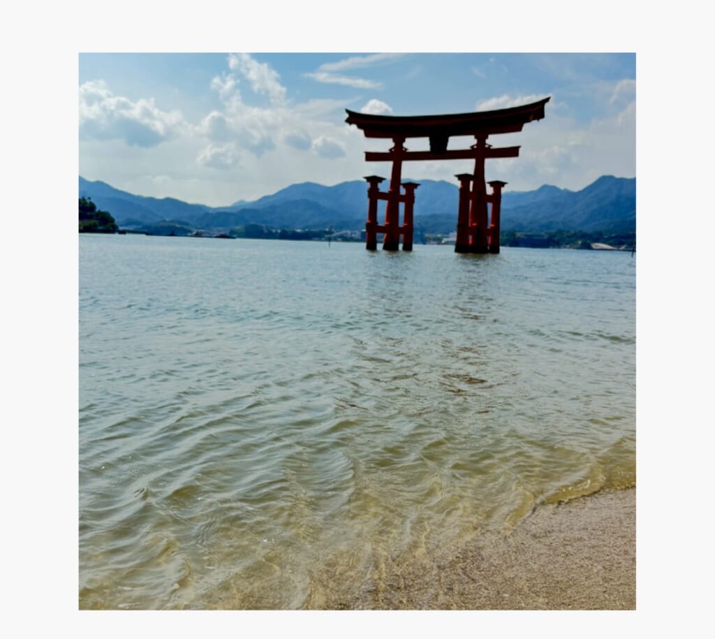 厳島神社は満潮時と干潮時で違った景色を楽しむことができます!私たちは満潮時に観光に行きましたが、干潮時に観光した友人は鳥居の近くまで行くことができ楽しかった、と言っていました(^O^)