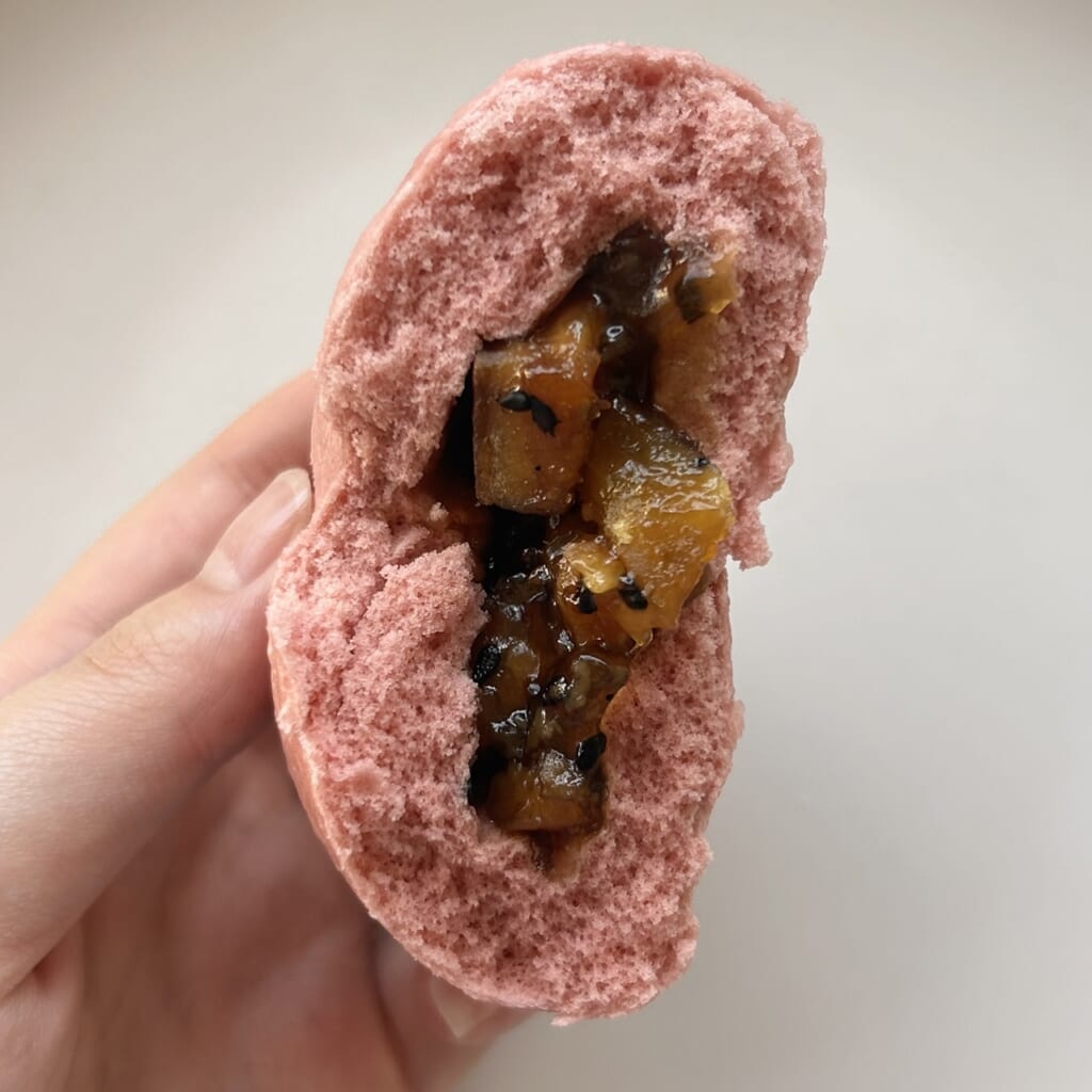 一定期間貯蔵することで甘さとねっとり感を引き出した「紅天使」を2度揚げすることでカリカリとした食感にし、切れの良い甘さのタレで染み込ませて、ふんわりとした生地で包んだ中華まんです。(ローソン公式サイトより)