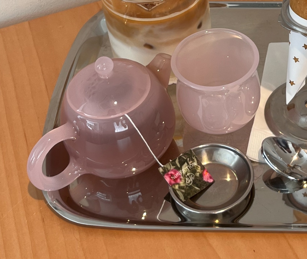 ホットで頼むとこのピンクのシルバニアの世界で使われているかのような可愛らしいポットで届きます!🫖