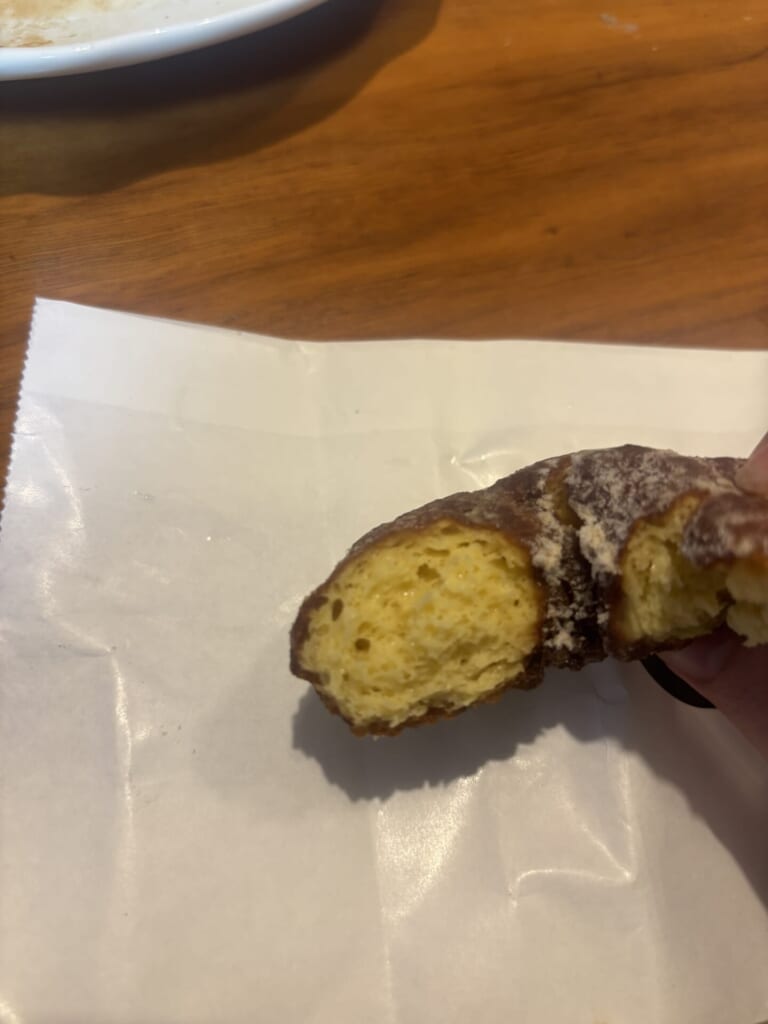 数種類の小麦と丸ごと焼いたカボチャを練り込んで仕込んだ生地を長時間低温熟成発酵させて、高温で一気に揚げることで、モチモチとしていながら、口の中で”ふわしゅわ”と溶けるような新しい食感と出会った。公式ホームページより引用